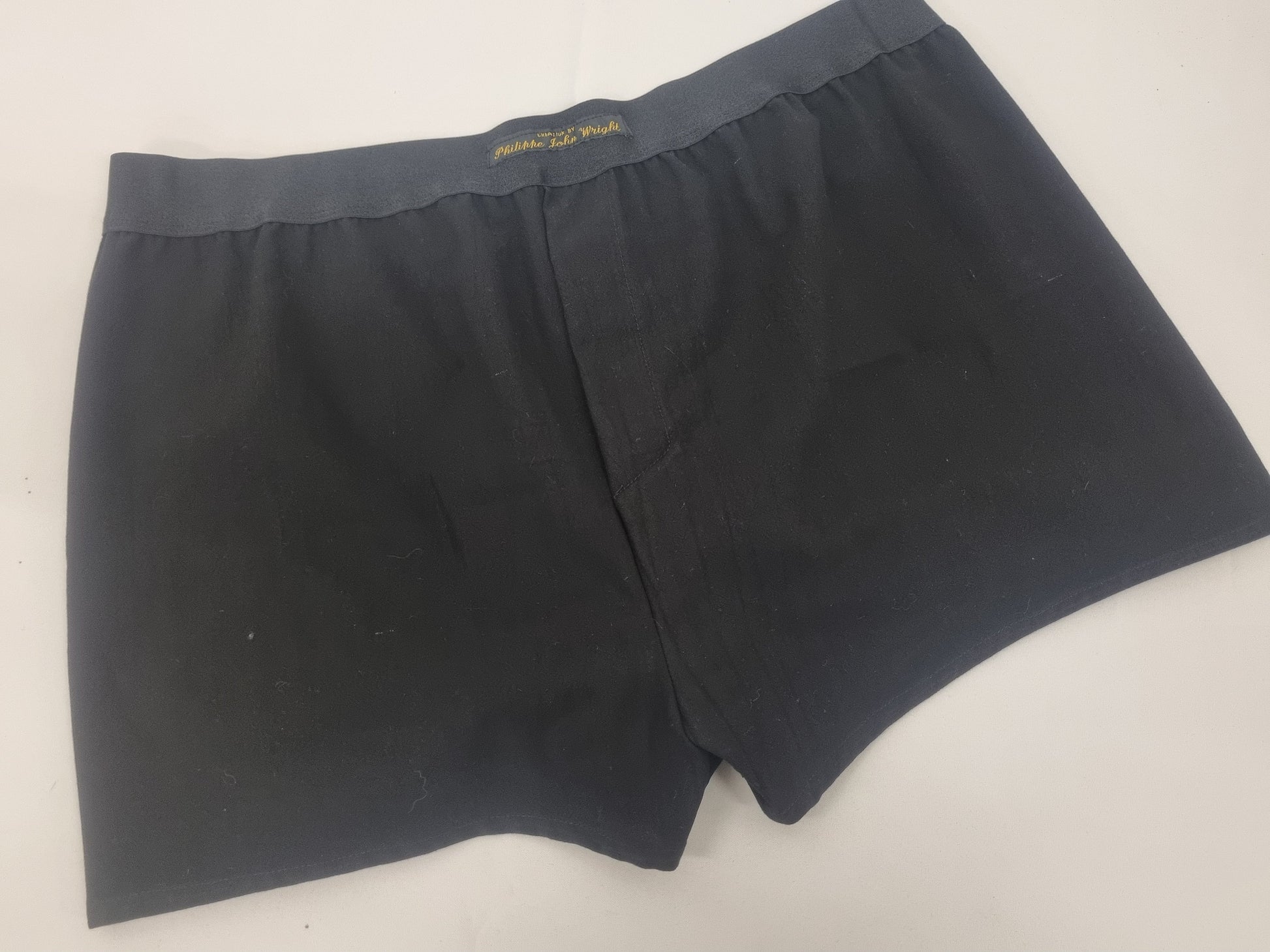 BLACK natural organic cotton men boxer shorts with white elastic.