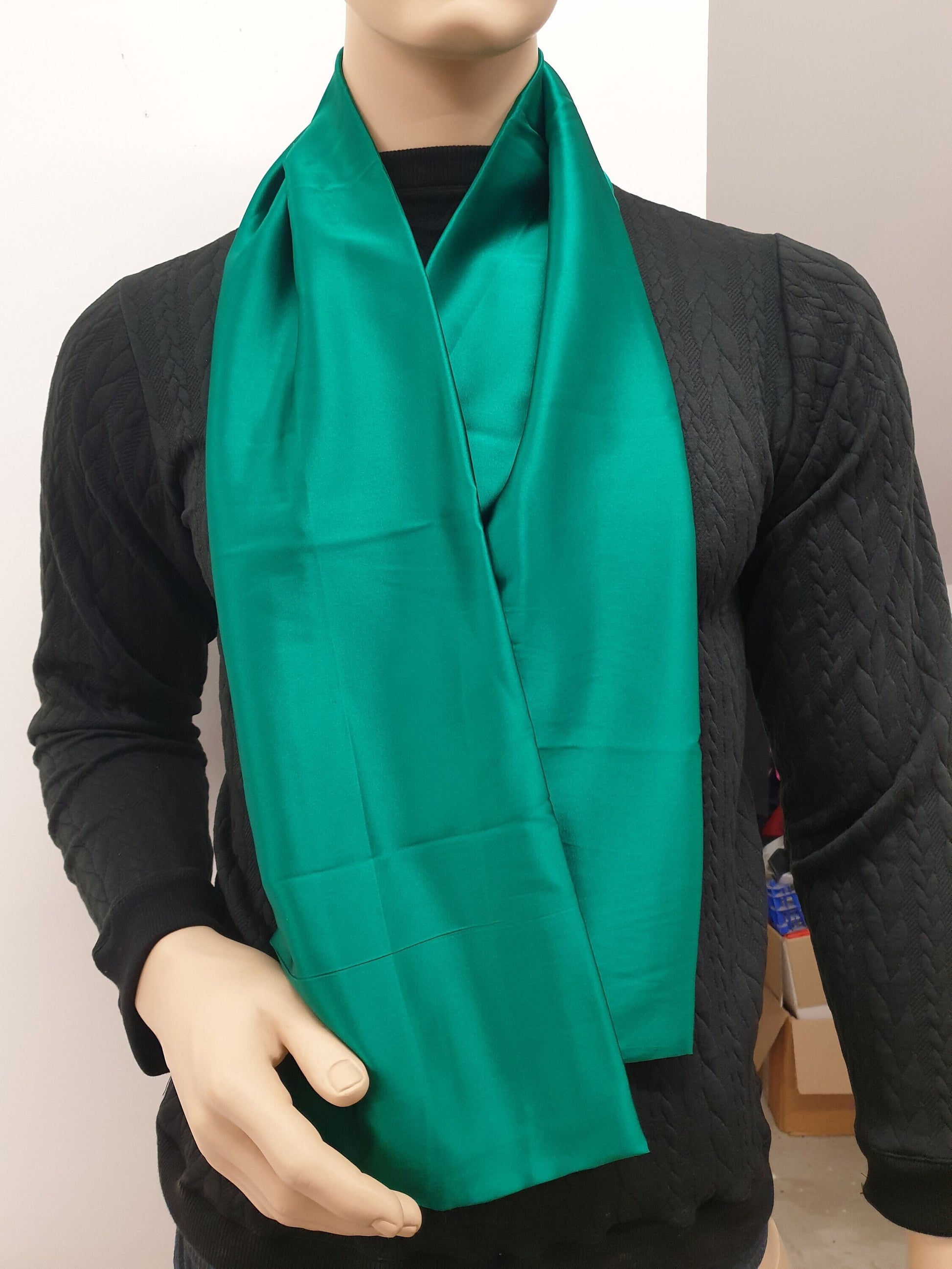 GREEN hight quality silk scarf, hand made in France.