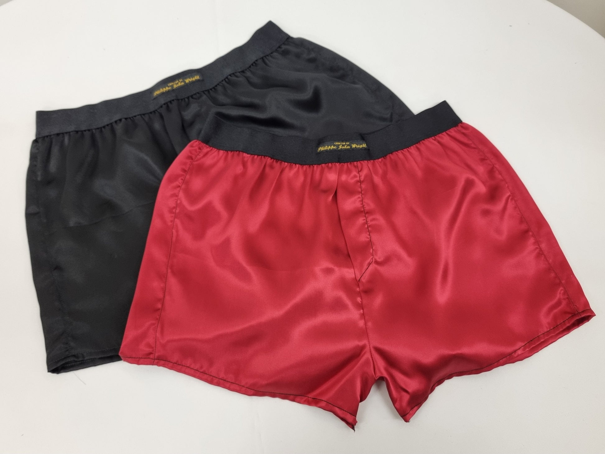 High quality double bundle black and burgundy Silk boxer shorts made in France